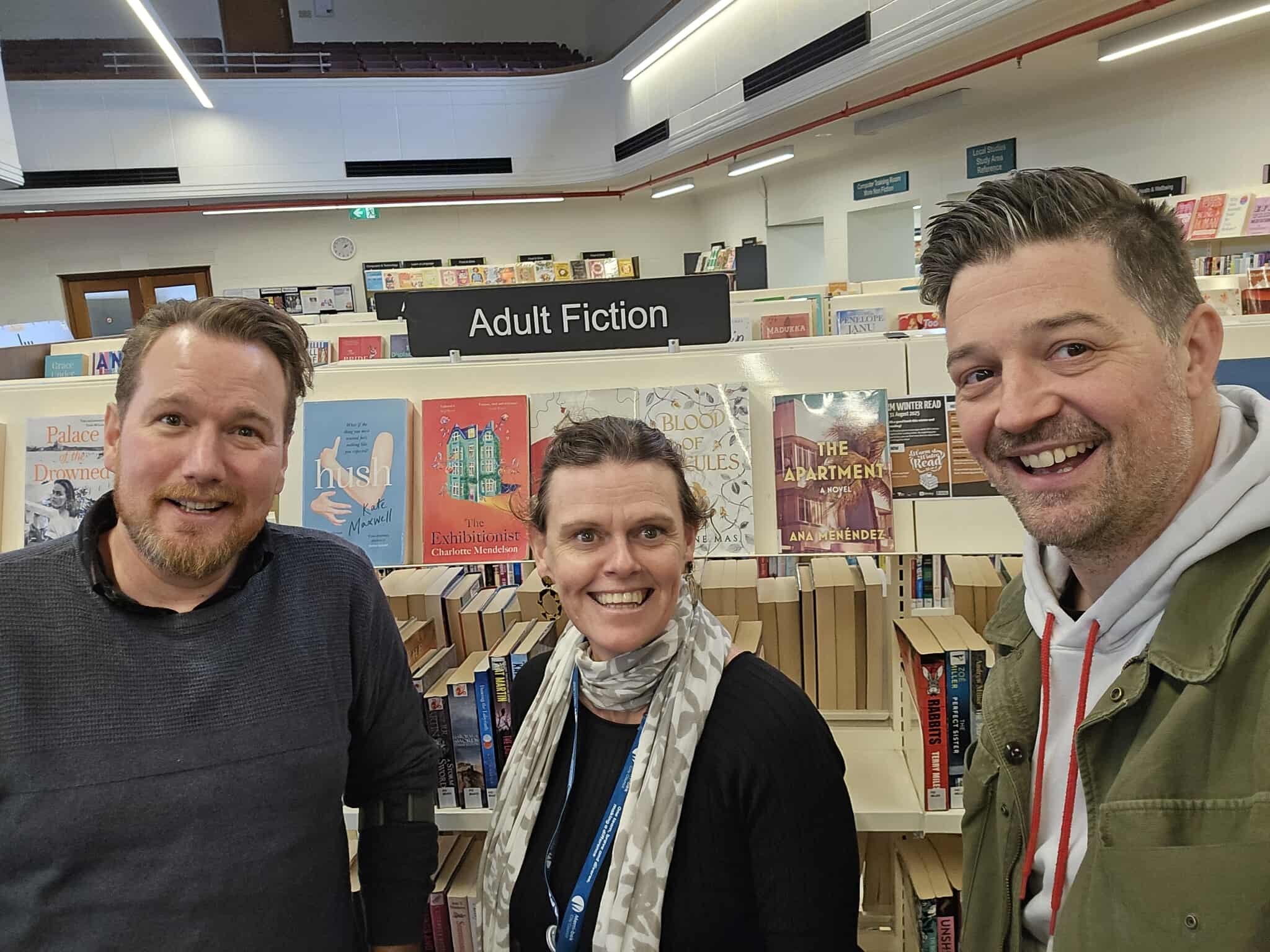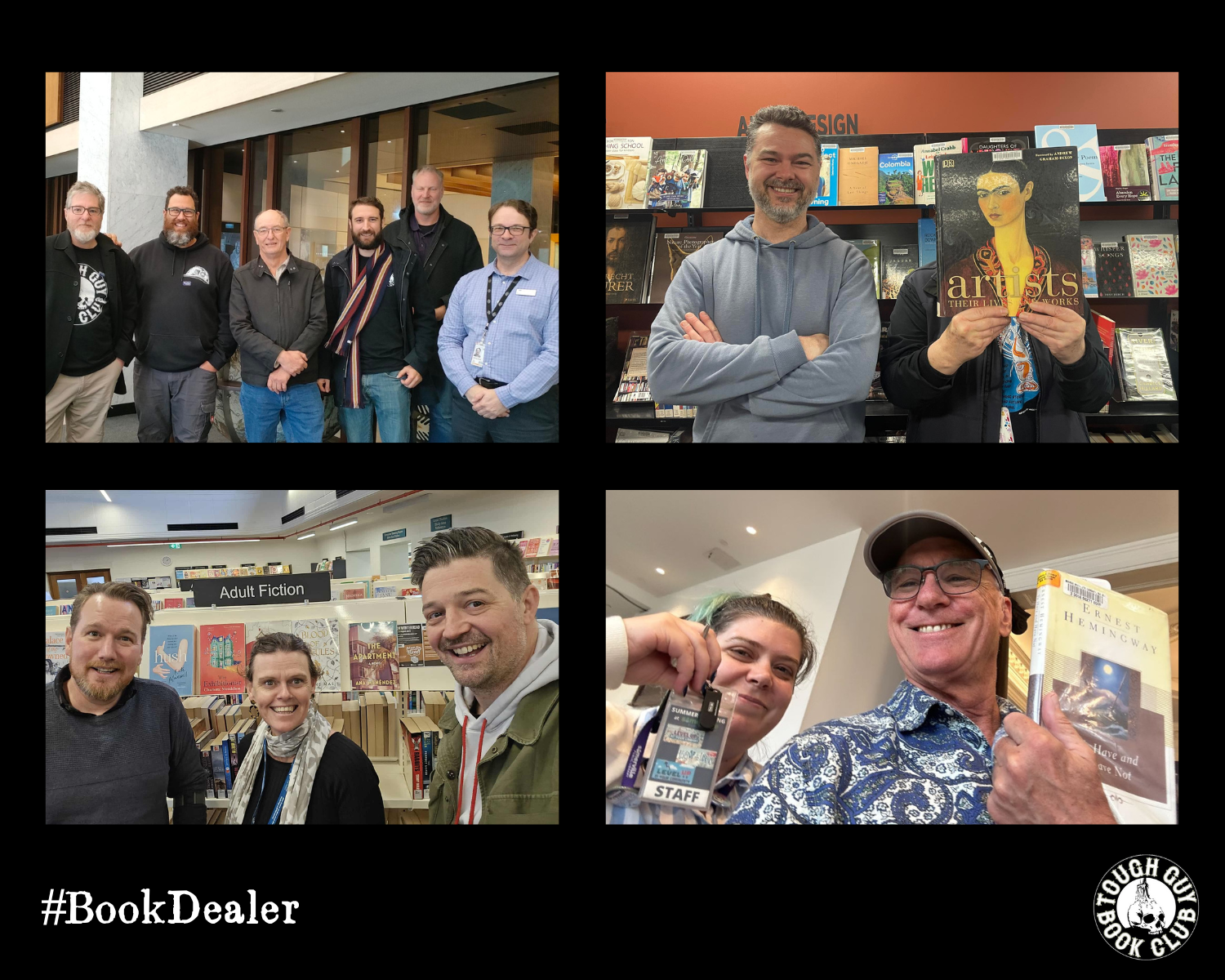 At Tough Guy Book Club, we think libraries are cool. So cool that we put it on a shirt. So cool that you’ll usually find a couple of Goons fighting over loans of the monthly book at any library where we have a presence. So cool that the challenge for July 2025 was to get a selfie with your librarian under the hashtag #bookdealer.